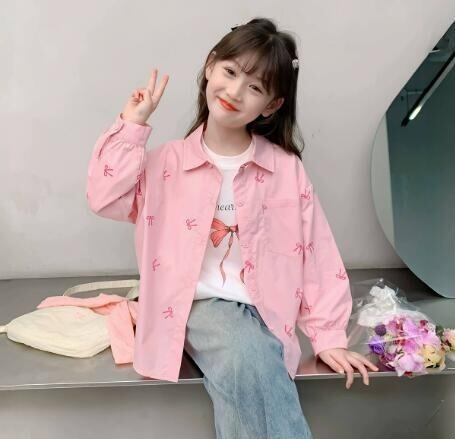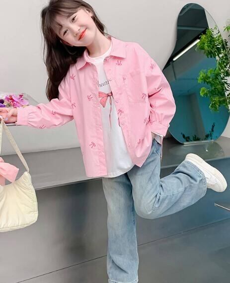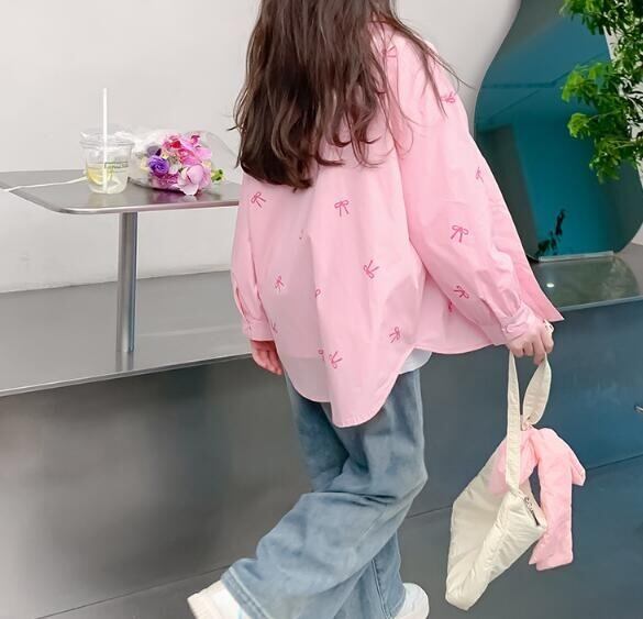 おしゃれで可愛いリボン柄がキュートなガールズシャツ!