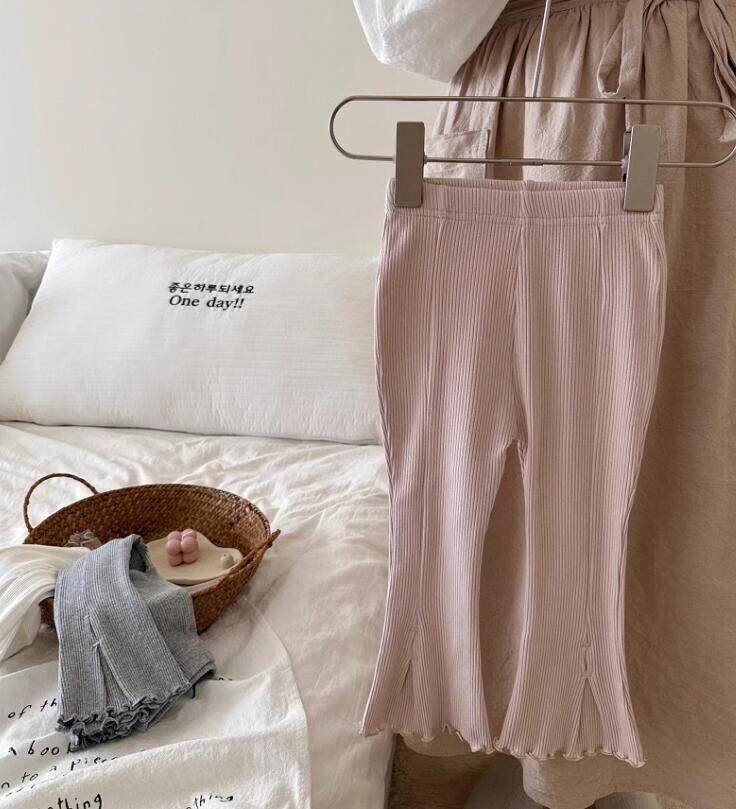 スリット入りの子供用カラーロングパンツは、シルエットが美しい!
