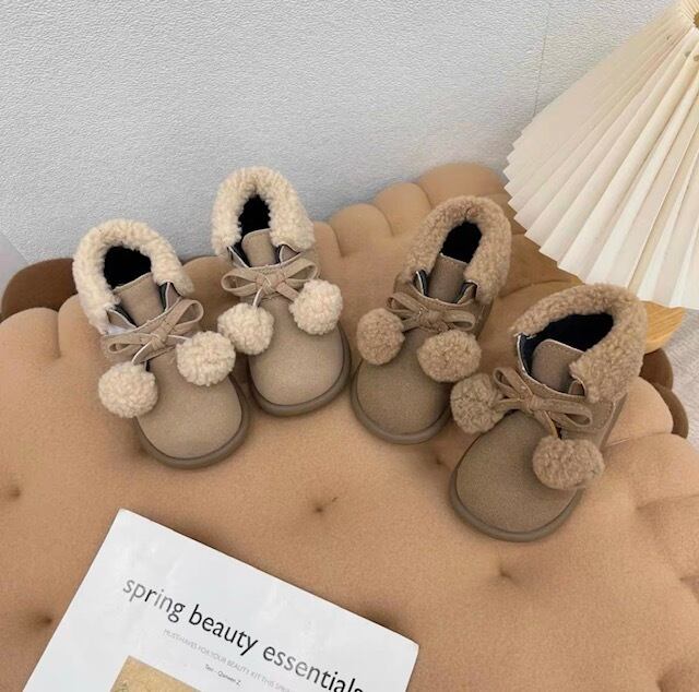冬のおしゃれを楽しむための「韓国風 ボンボン ムートン ブーツ」が新登場です!暖かさと可愛らしさを兼ね備えたこのシューズは、男の子にも女の子にもぴったりの一品です。