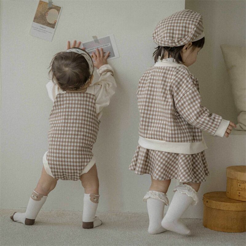 ◎ 66cm - 90cm ◎ 韓国 ベビー服 姉妹 お揃い ロンパース 可愛い サロペット 女の子 男の子 カバーオー ※ベレー帽は付きません | NEVERLAND KIDS - かわいい韓国子供服のお店 -